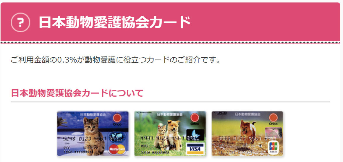 日本動物愛護協会カード【日本で最も歴史のある動物愛護団体の活動に貢献】