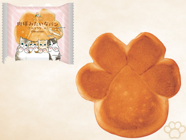 ミルク風味、ミルククリーム。だれもが大好きな組み合わせのふわふわパン。肉球の形だから思わずプニプニしてしまいそう。