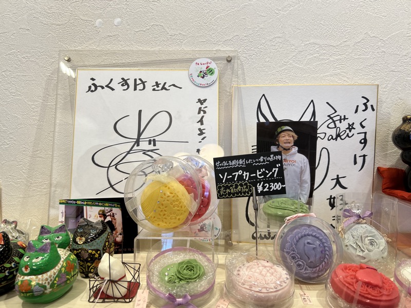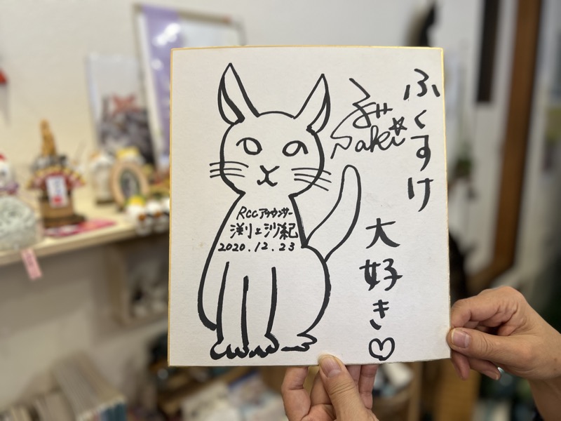 テレビ東京の充電バイクの旅では、ふくすけを訪問。出川哲朗さんと香取慎吾さんのサイン色紙もあります。