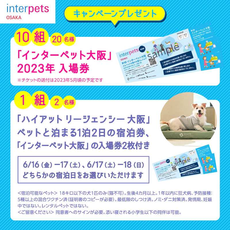 ペットとの宿泊券が当たる!「ハイアット リージェンシー 大阪」とコラボキャンペーンもスタートしました。