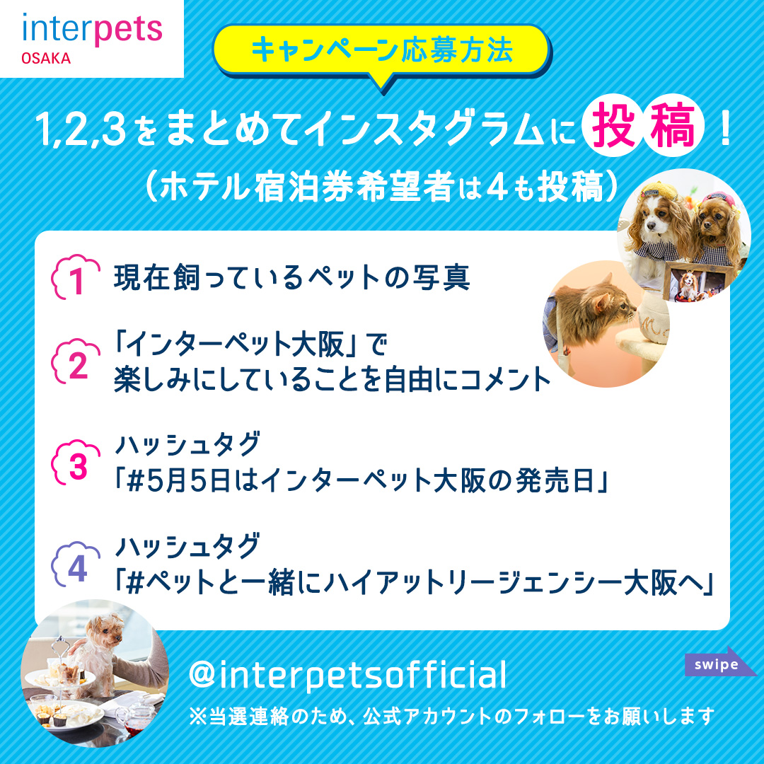 - ハッシュタグ「#5月5日はインターペット大阪の発売日」や「#ペットと一緒にハイアットリージェンシー大阪へ」をまとめてインスタグラムで投稿。