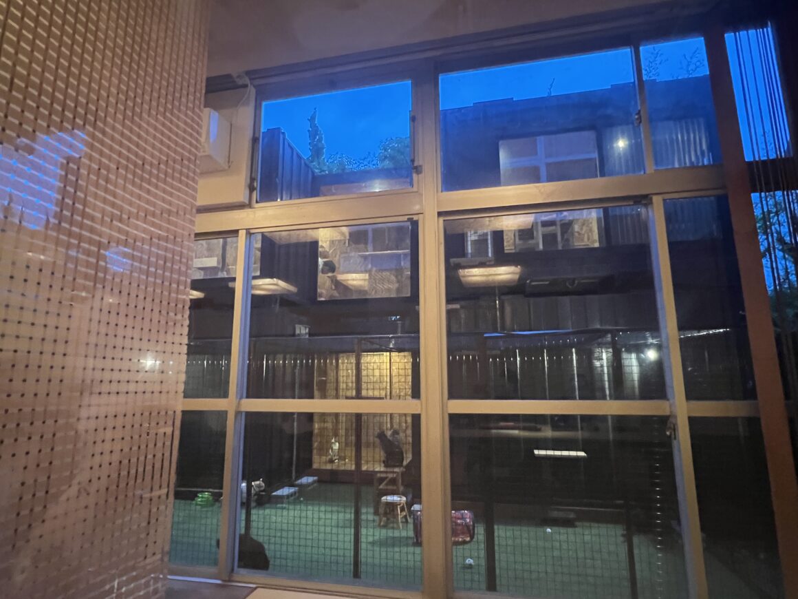 猫たちも窓越しにこちらを見に来ます。