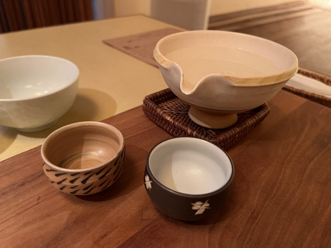 連れが頼んだ日本酒笑。器もステキです。