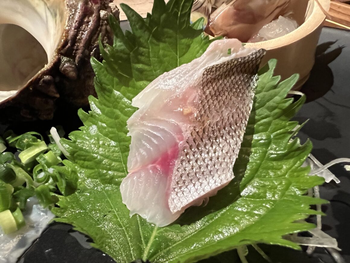 造り  イサキの松笠 ひらめ コチの薄造り