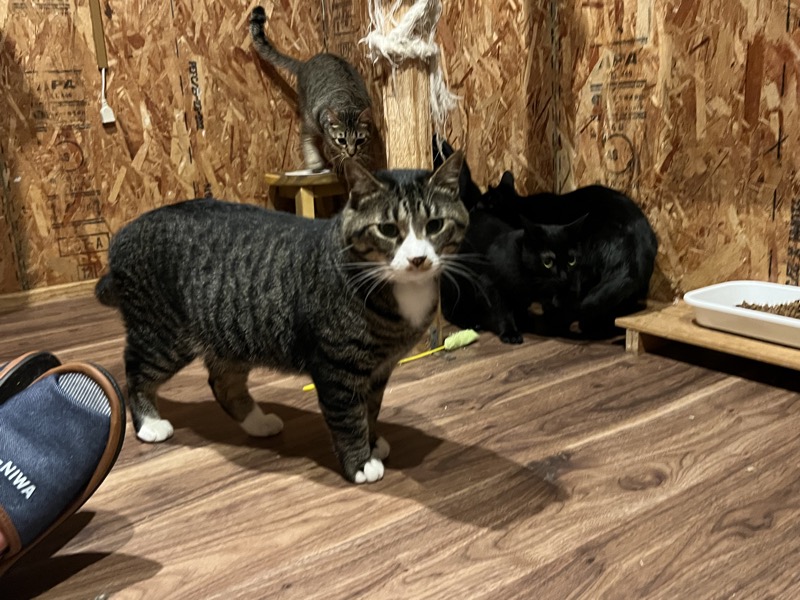 猫庭の猫たちが遊ぶ様子