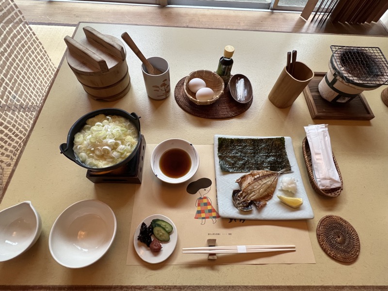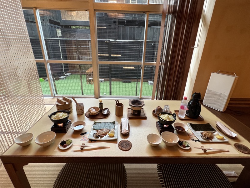 猫庭の猫が見えるはずのてしま旅館の朝食