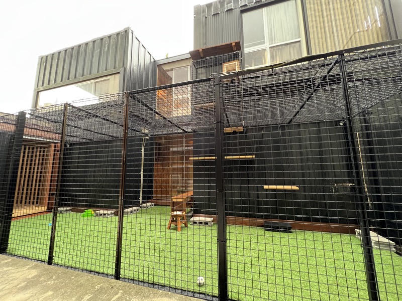 正面が猫たちのいる猫庭コンテナと、できたばかりのお庭です。