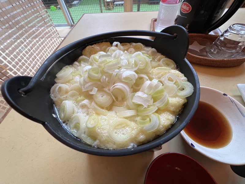 このお鍋が、絶品でした。ふんわりとした油揚げとネギを温めます。