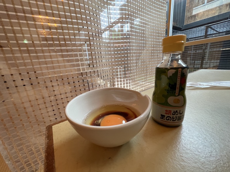 卵は猫庭特製の「のり醤油」。青のりの風味たっぷりのお醤油です。
