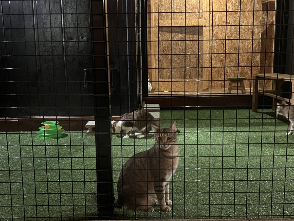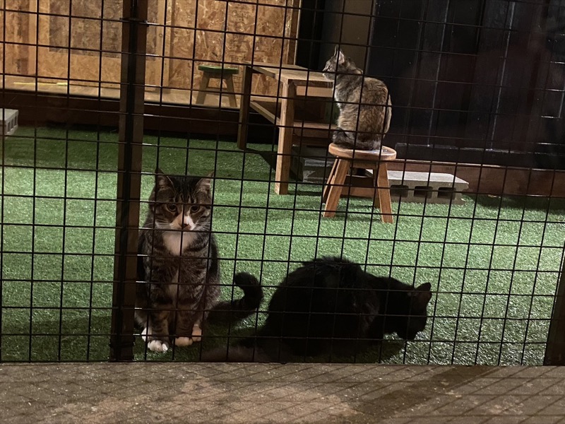 ちなみに食事の後に、猫庭の中に入って、さっきの子とご対面♡