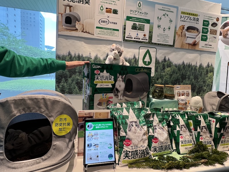 エステーペットでは新発売のトイレ。汚れ防止、防臭抗菌加工をされて使いやすいトイレです。ペットシーツのサンプルをいただきました。