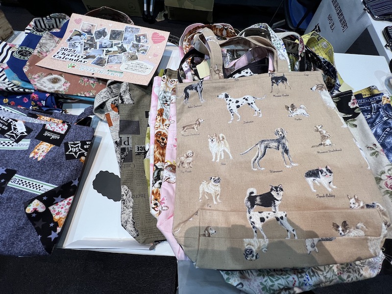 メーカーや保護団体からの物販コーナー。