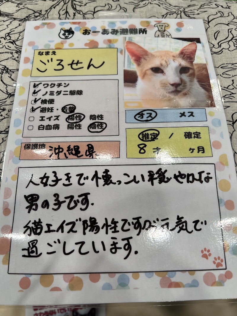 こんな風に保護犬猫の情報がケージやボードで掲示されています。それぞれの保護団体さんにふだんのお世話やその子の性格などを聞いてみてくださいね。