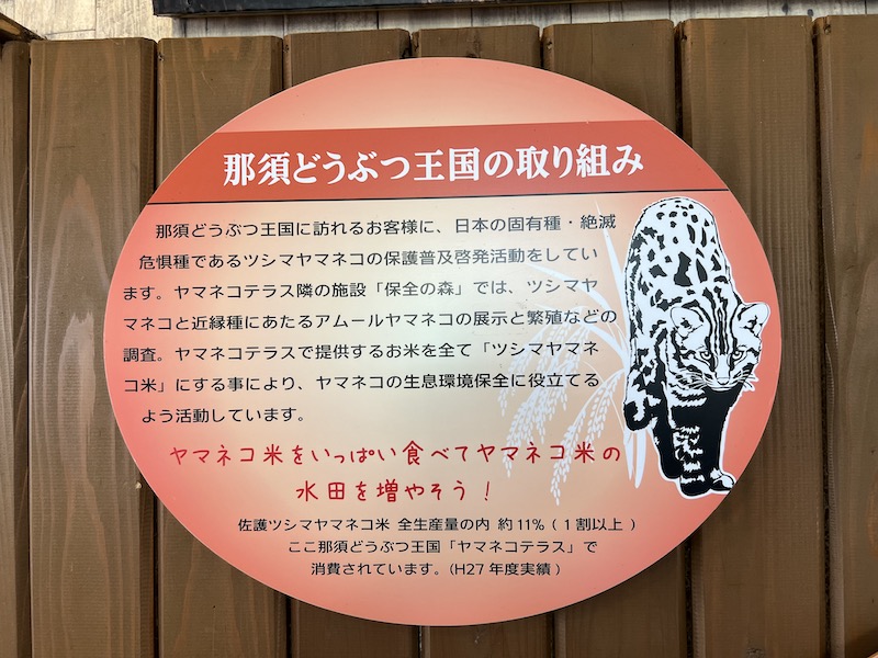 那須どうぶつ王国では、日本固有であり絶滅の恐れが非常に高いツシマヤマネコの保護啓蒙活動に取り組んでいます。