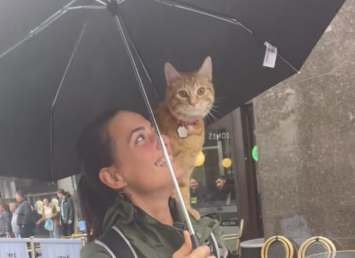 雨の日でもお散歩したい! 傘をさして出かける猫さん。