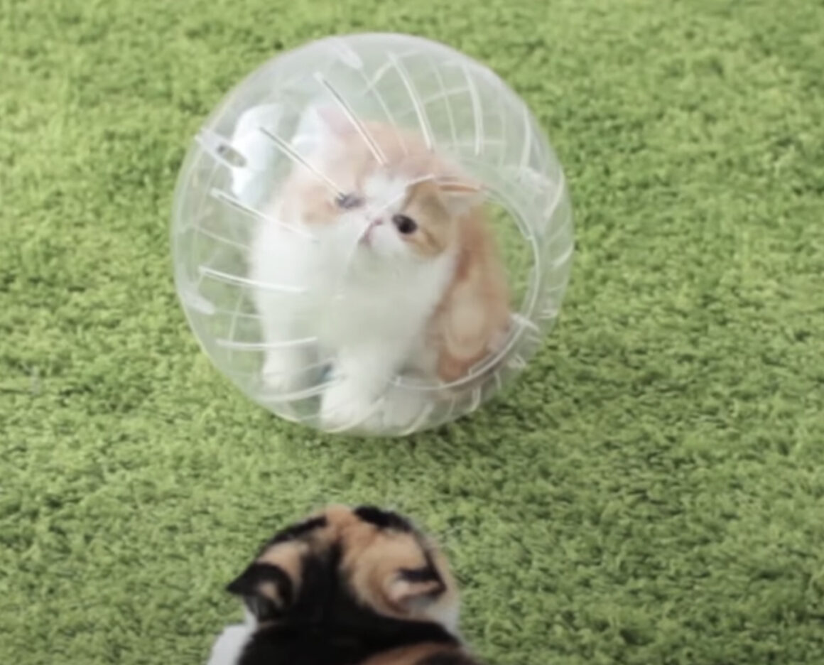 ハムスターが入って遊ぶような、 ガチャガチャのカプセルに似ている 透明のボールに入る子猫さんたち。 大人猫さんには入れない大きさだけど 子猫の時なら、簡単に入れちゃうみたい。 丸くてコロンころんと転がっちゃうから 目が回らなか心配だったけど、 ... -