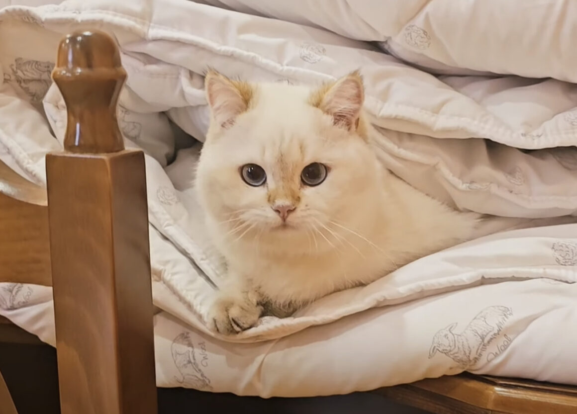 飼い主の毛布を奪う猫さん、秘密基地ができたみたいで嬉しそう♪