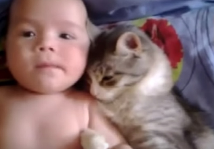 ねこと赤ちゃんのいちゃいちゃぶりが照れるレベル