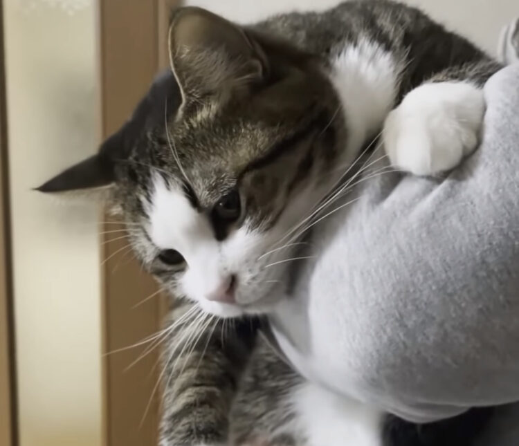 抱っこが心地良すぎて…♪ エアふみふみして脱力する猫。
