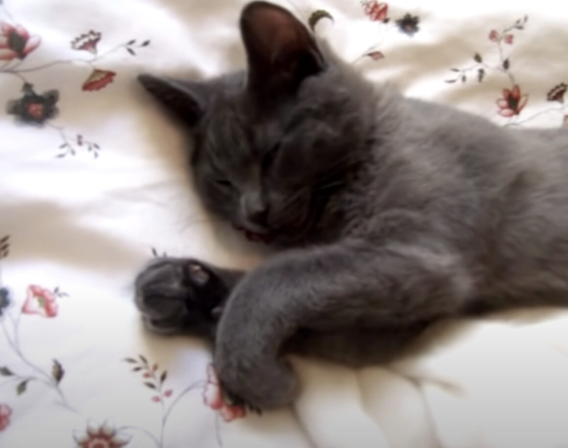 ニャーっと大きな声でおしゃべりする子猫「あとちょっとだけ寝かせてよー!」って言ってそう。