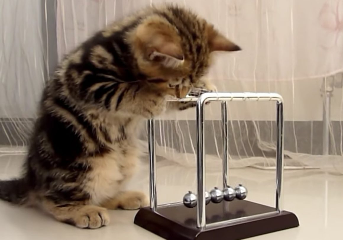 カチカチと同じペースで 動き続けるこのおもちゃ、 ニュートンのゆりかご! ちょっと懐かしく無いですか? 昔家にあった人もいるかも。 物理の授業で聞いたことあるかも? それを子猫さんに見せてみたら、 予想以上に可愛い反応が返ってきました。 手でち... -