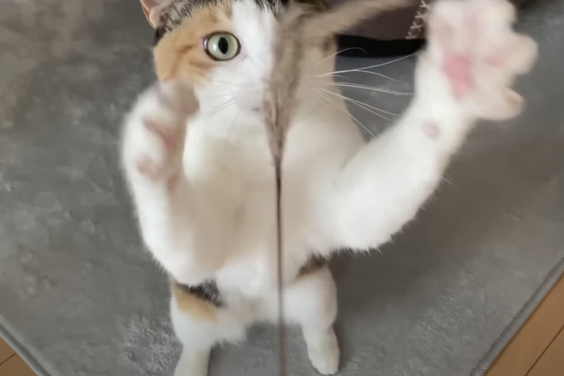 天然の猫じゃらしに大興奮! 目をキラキラさせる猫さんたち♪