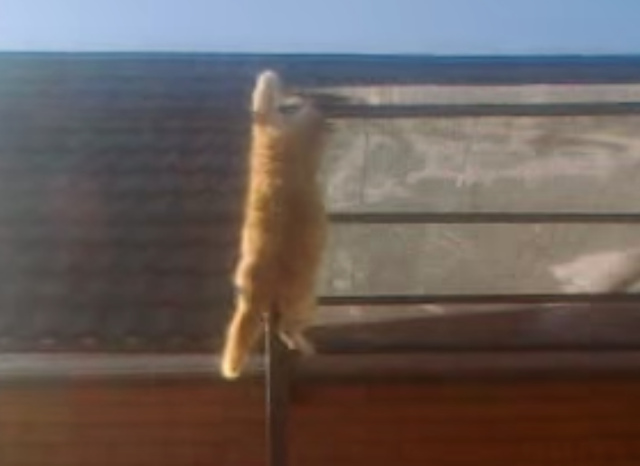 香港映画のワンシーンみたい!屋根からカッコよく降りる猫。
