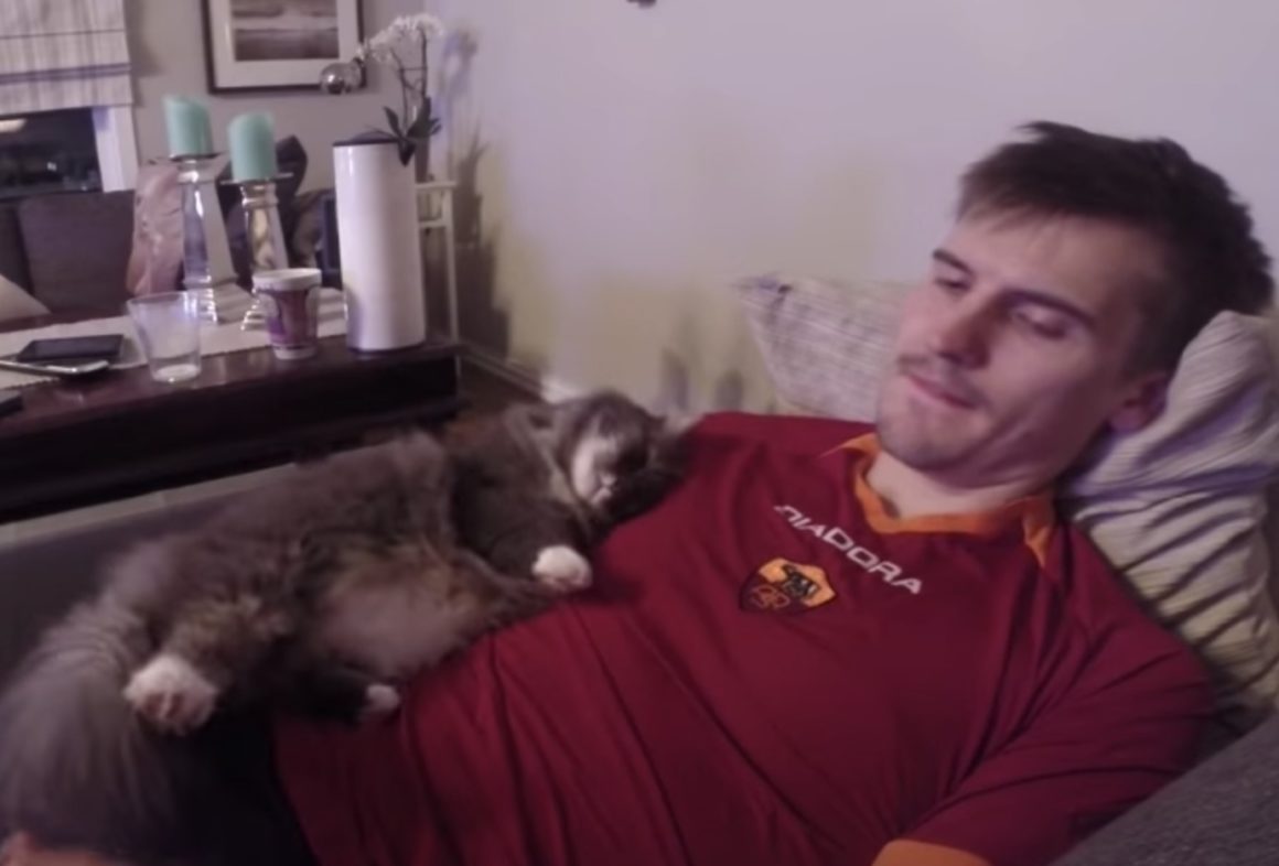 飼い主の男性が、テレビゲームをしながら ソファでくつろいでいると、いつも猫さんがやってくるのですが その甘え方がものすごく可愛いのでご覧ください。 飼い主さんはいつも足を伸ばしてソファでゲームするので そんな時はお腹がガラ空き! それを分かっ...