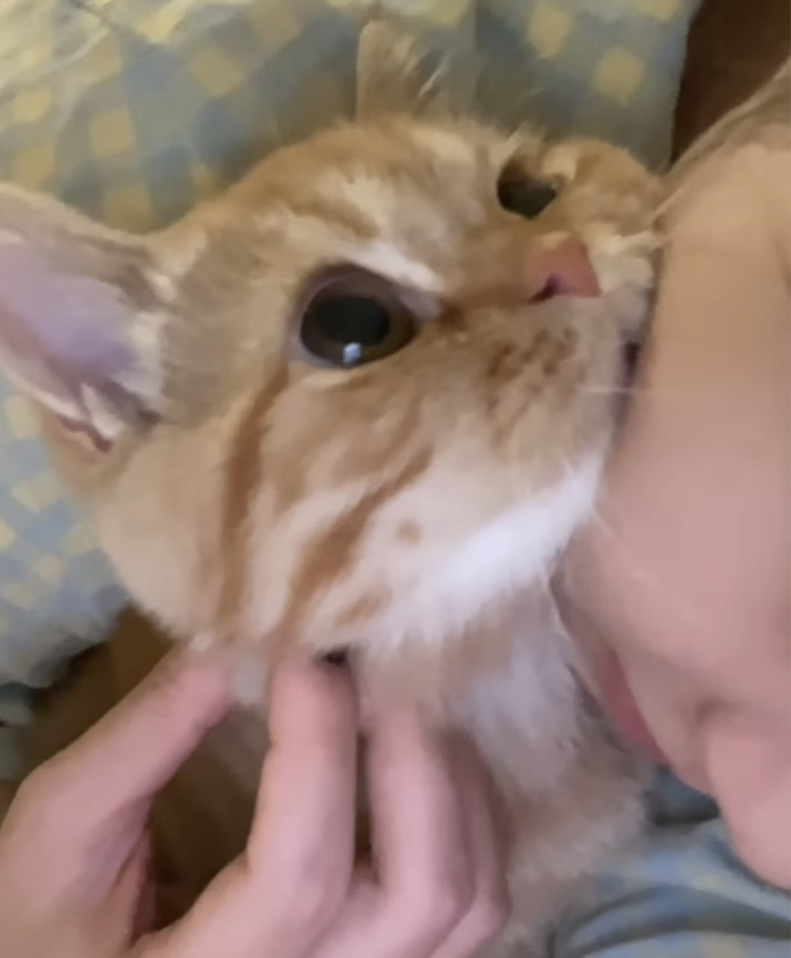 こんなに甘えてくれるなんて羨ましい! ぴったり頬をくっつけて眠る猫さん。