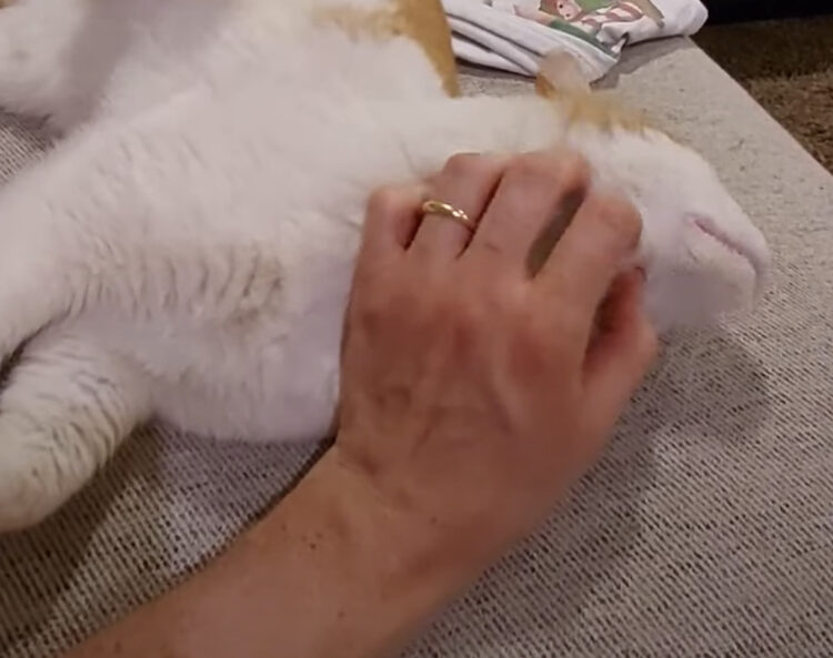 愛猫の喜ぶ撫でポイントみっけ! なぜか後足も連動して動いちゃう。