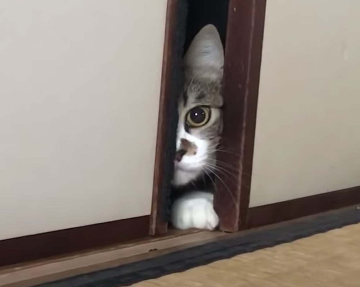 朝になったら起こしに来てくれる猫、ふすまの隙間からそーっと…
