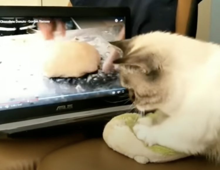 3つ星シェフに弟子入り?動画を見てフミフミを極める猫さん。