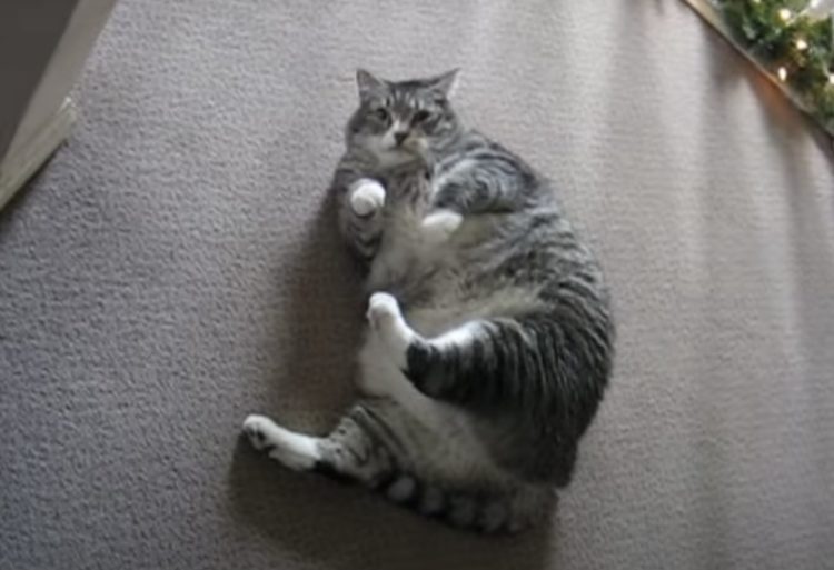 ダイエットしたほうがいいかな?仰向けになりたいけど、転がっちゃう猫さん。