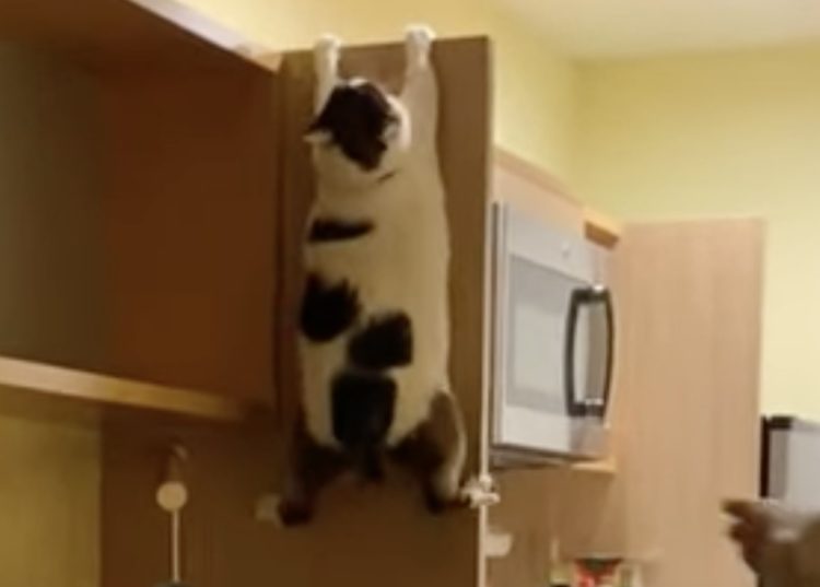 アメリカに住んでいるぽっちゃり猫、ジャクセンくん。 体が重くってもやっぱり猫なので 高いところに登るのが大好き! しかし、自分の体型のことを忘れてしまって 棚に飛び移ろうとしますが、 体が重すぎて...登れない!! 落ちそうになるところを、 手を...