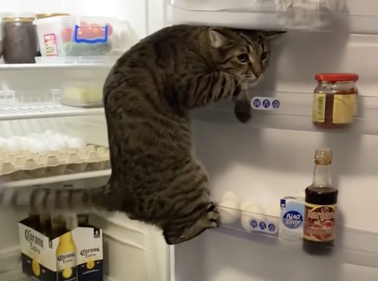 涼しいキャットタワー、、、じゃないよ! 冷蔵庫に登る猫。