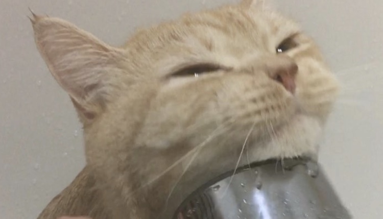シャワーが気に入った子猫「極楽すぎるにゃ〜」