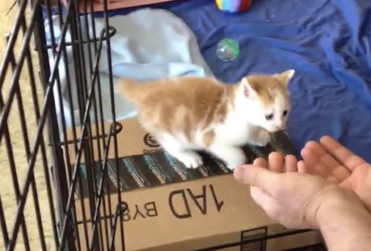 ケージの中にいる子猫さん。 体の大きさ的にも、生後1ヶ月ほどでしょうか。まだいろいろな動きがあどけなくてかわいいですね。 飼い主さんがケージをあけ、おいで!と手を差し出すと...ジャーンプ! 出典:yariv peleg