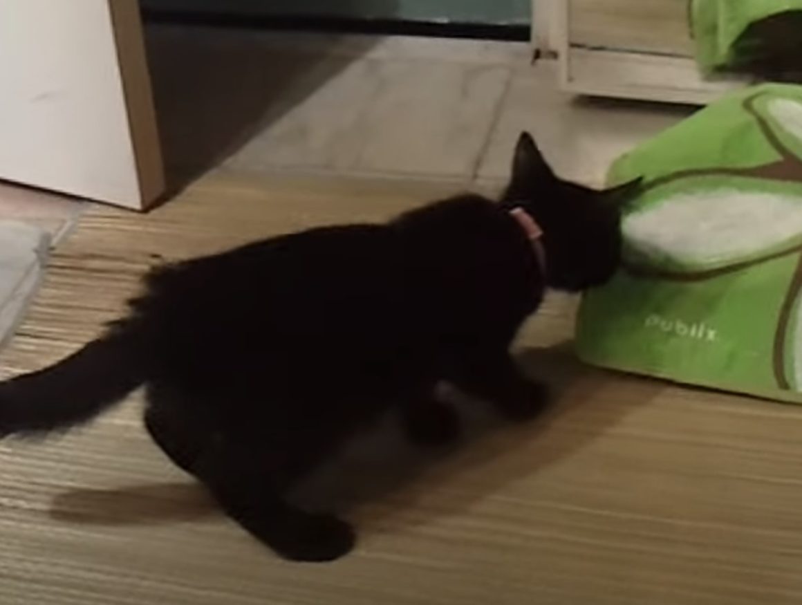 なぜか袋が怖い子猫、ぴょんぴょん飛びながら戦うぞ!