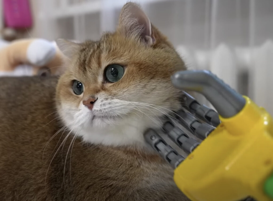 飼い主の手がロボットに! 「でもどーでもいいニャ」全然気にしない猫さん。
