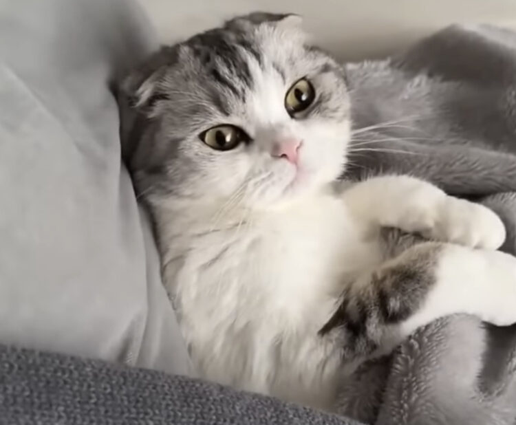 ベッドに腰掛けている、 スコティッシュフォールドさん。 仲良しの赤ちゃんのベッドを 「一緒に使っている」なーんていう、 微笑ましい映像かと思って見ていたら 赤ちゃんが近づいてきた瞬間、 ハッ!と表情を変える猫さん。 そのまま赤ちゃんが通り過ぎる... -