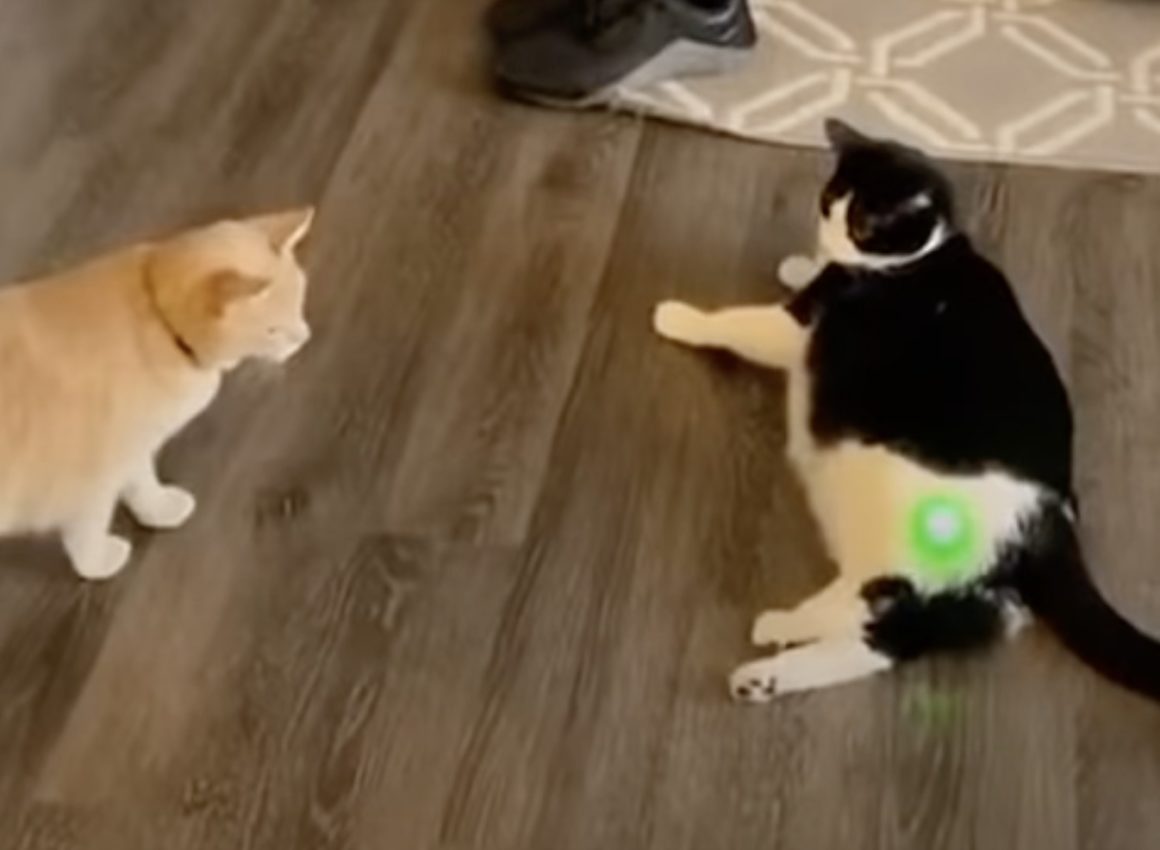 狩猟本能をもっている猫さん。 獲物を見つけると、体が動いて 追いかけずにはいられません! こちらの茶トラ猫さんも、 飼い主さんが操るレーザーポインタの 光を夢中になって追いかけています。 廊下から壁まで、ジャンプして捕獲しようと 頑張っていた猫... -
