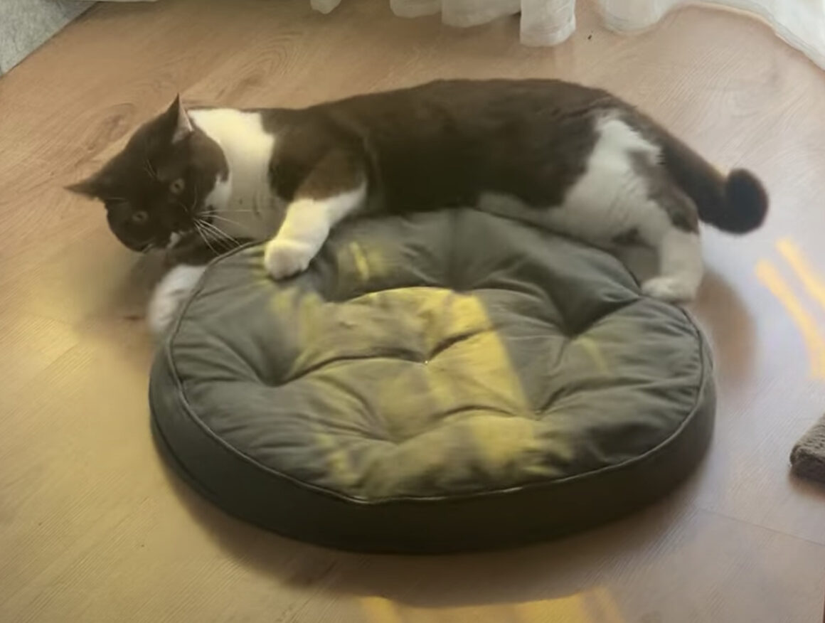 寝たままでも運動はできる!猫さんの独特な運動方法♪