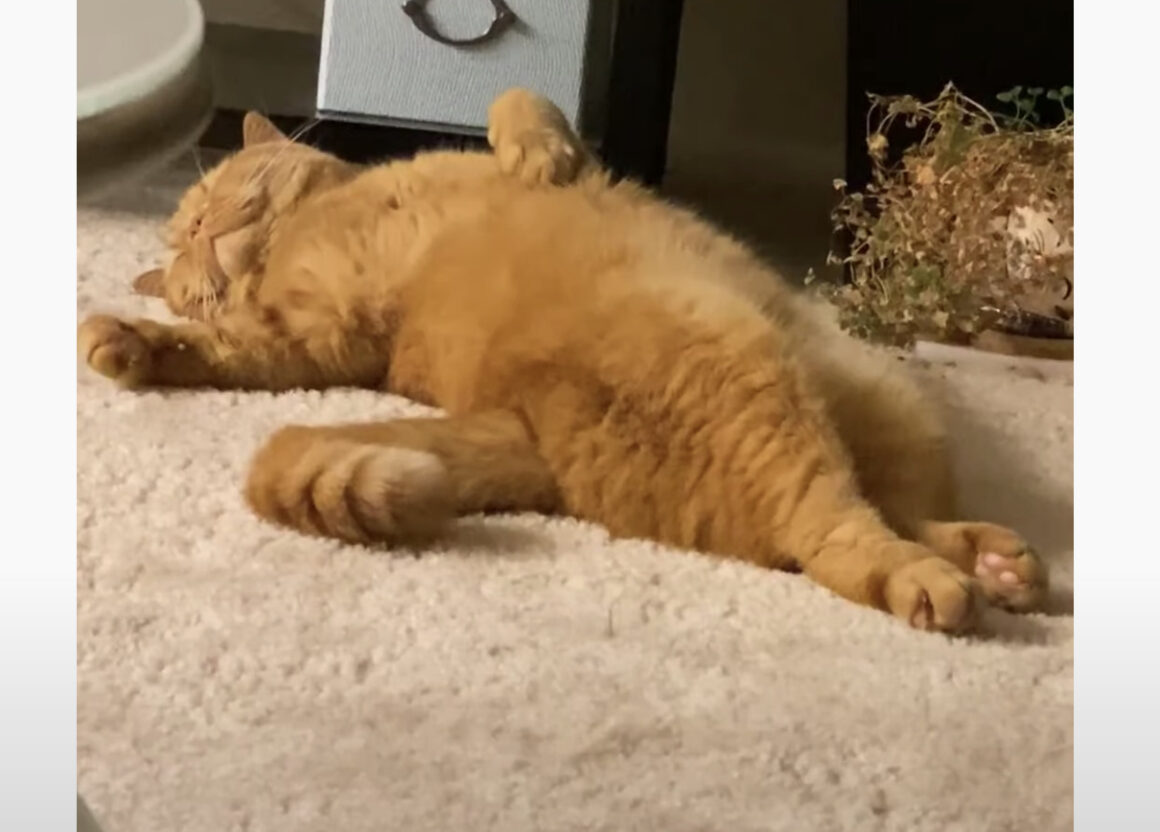 反応可愛すぎでしょ!寝起きの猫と目が合ったら、お顔をムギュっと隠して…