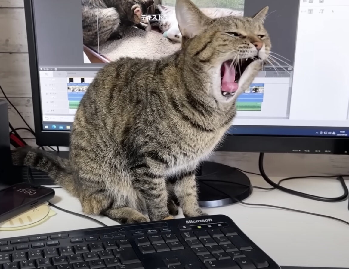飼い主さんが作業しようと、 パソコンに向かっていると むにゃむにゃとお喋りしながら 妨害にやってくる猫のリリちゃん。 「作業よりも、遊んでー!」と 飼い主さんにお話しているみたい。 自分にかまってくれるまで ずーっと、ムニャニャと話しかけてきた... -