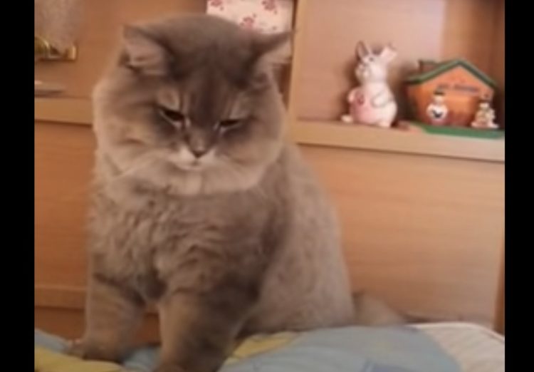 どうしよっかなー。枕元で何かを悩む猫さん、このあとの行動にキュン♪