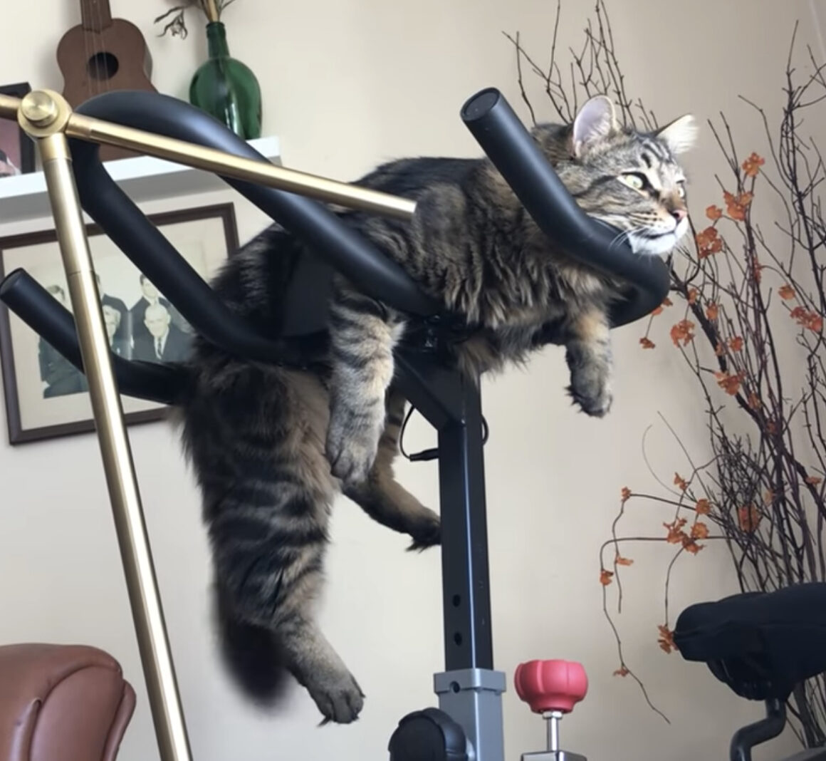 一体どういう状況なんだい? 思わず二度見してしまう、 でも二度見してもよく分からない 猫さんのくつろぎポーズ。 お外の景色を眺めて、 鳥さんたちを観察しているようなんですが 猫さんがくつろいでいるのは エアロバイクのハンドルの部分! 顎ははじっ... -