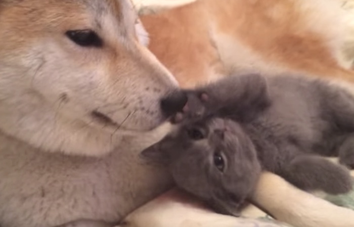 柴犬と子猫のいちゃいちゃぶりが照れるレベル