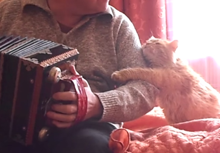 音楽好きな猫。飼い主さんがアコーディオンを弾くと…