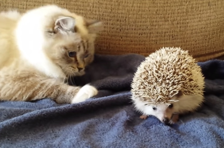 ちくり!うっかりハリネズミに座ってしまった猫の反応が…