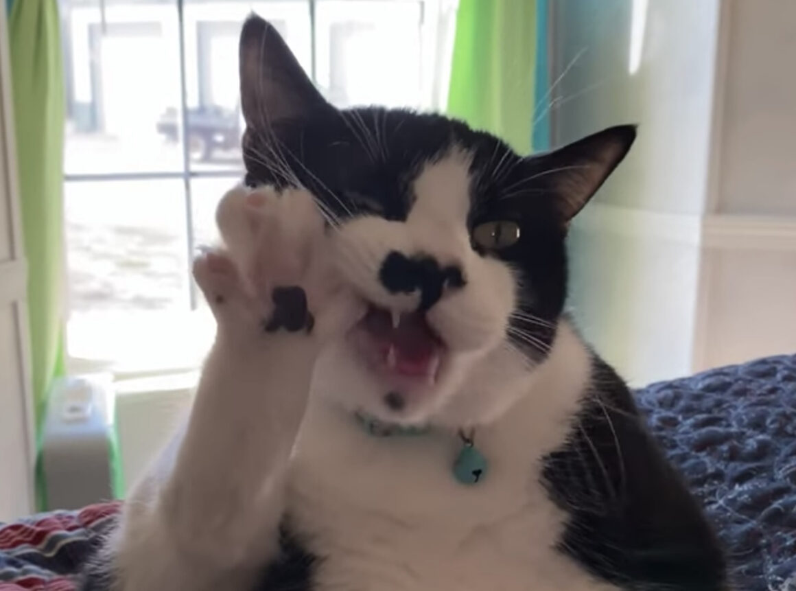 綺麗好きな猫さんは 起きている時間のほとんどを 毛づくろいに使うほど とっても自分の身を綺麗にします。 自分の舌が届く範囲で お腹を舐めたり、手足を舐めたり もちろん自分の足の指も!! こちらの猫さんも自分の足を 綺麗にしているところなのですが ...